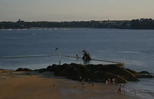 Voici quelque chose qui existe sûrement un peu partout au bord de la mer, mais que je n'avais jamais vu : une piscine d'eau de mer ! Très pratique pour les parents qui préfèrent emmener leurs enfants à la plage, mais craignent un peu les courants ou la profondeur. Cette piscine d'eau de mer se trouve sur la plage du Bon Secours à Saint-Malo. Il y a même un plongeoir ! Bref, c'est une super découverte, et c'est vrai que c'est moins fatigant que de brasser contre le courant pendant des heures.