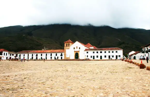 La Place Principale de Villa de Leyva est la plus grande place principale de toute la Colombie ! À environ 3 heures et demi de bus de Bogotá, ce pueblo vous enchantera, pour ces rues pavées, sa place gigantesque toute entourée d'arcades (restaurants et bars vous y attendent), son église, ses montagnes alentours... On s'attendrait presque à voir surgir des bandits à cheval, les sabots claquant sur le pavé ! Sur les photos il fait "un peu" gris. C'est qu'en fin d'après-midi, souvent arrivent de gros orages, et croyez-moi ici les averses vous laissent trempé comme une soupe !