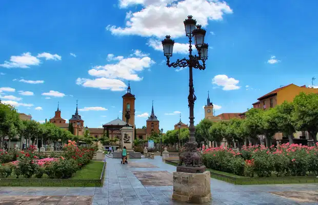 La Place Cervantes, du nom célèbre auteur du Quichote, peut aisément être considérée comme le centre de la ville d'Alcalá. En effet, la place, sa statue, hommage direct à l'écrivain, et son joli petit kiosque semblent délimiter les deux "parties" d'Alcalá: L'Alcalá des étudiants, avec sa fameuse et splendide université, et l'Alcalá médiévale, avec ses rues et ses arches. Boutiques et cafés s'organisent autour de la place; et celle-ci sert bien souvent de point de rendez-vous pour les jeunes, de terrain de jeu pour les enfants, ou de lieux de promenade... Un joli compromis entre les diverses dimension