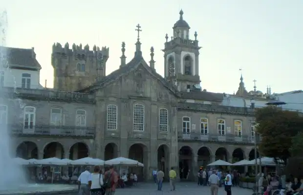 La place de la République se trouve au cœur de la ville. Il a trois grandes fontaines ornementales avec de multiples jets eau et cascades. En face, il y a plusieurs restaurants et cafétérias avec des terrasses. Vous pouvez trouver des jolis bâtiments comme la "Banque Portugal", et le centre commercial de "Braga Shopping". Sous la place, il y a un parking souterrain.
