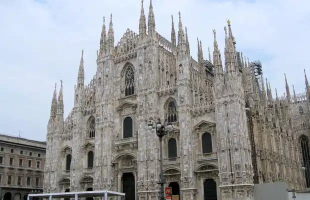 C'est la place centrale de la ville, elle est superbe, c’est l’une de ces places que tu vois en noir et blanc, comme autrefois. La cathédrale la préside, elle était restaurée et il y avait tant d’échafaudages et de toiles qui la couvraient. A notre arrivée, elle était pleine de gens marchant d'un côté à l’autre sans arrêter, des milles et des milles colombes, et des « panisottos » qui sont des vendeurs de maïs. Dans un des côtés se trouve l'entrée aux galeries Vittorio-Emmanuelle. Dans les galeries, il y a un taureau dessiné sur le sol, et la légende dit qu’ il porte chance, tourner avec le talon au-dessus des testicules du taureau.