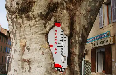 On peut s’amuser de ce thermomètre Martine, englouti par le platane qui orne l’endroit et qui semble lui donner un cœur alcoolisé. Un endroit qui aurait pu avoir du charme, à tout autre emplacement. Dommage.