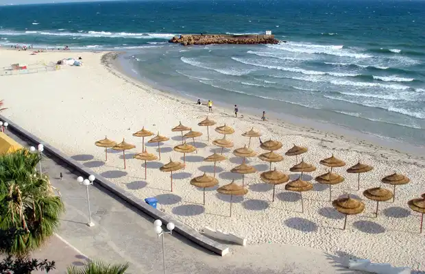 La plage de Sousse semble complètement retiré de la Caraïbe avec ses sables blancs et fins comme de la farine.