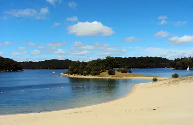 La plage de Puech les Ouilles, à seulement 20 minutes en voiture de la ville d'Aurillac, est l'une des préférées des 'Cantalous', et pour cause, l'eau y est toujours très bonne en été (jusqu'à 30°C), la plage est surveillée par un surveillant de baignade diplômé, et le paysage est splendide. La plage, faite de sable fin importé, est casée entre la base de voile et la presqu'île, souvent occupée par des pêcheurs de carpe. La descente en profondeur est très progressive, ce qui permet à toute la famille d'aller se baigner.
