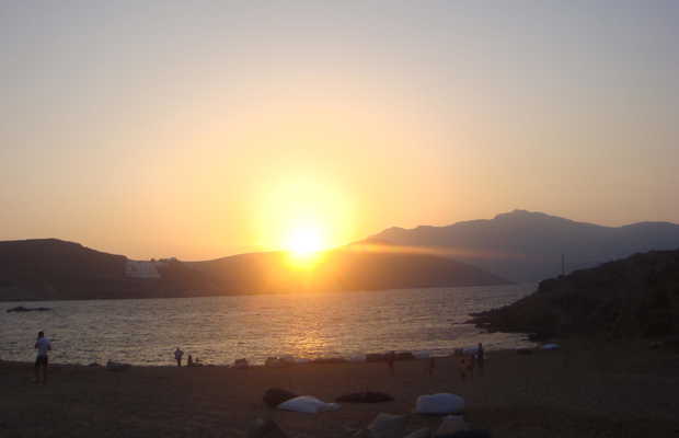 La plage de Ftelia est agréable, bien que l'eau ne soit pas aussi claire que dans les autres plages de Mykonos. Le bar de la plage à la mode est la "Alèmagou". Avec des toits de chaume et de nombreuses collations grecques, vous pourrez profiter d'un beau coucher de soleil.