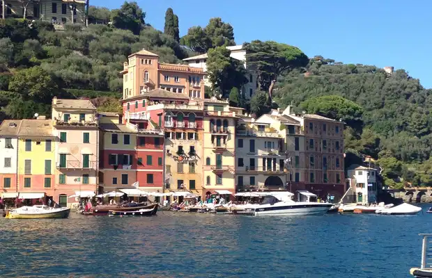C'est un petit port avec de nombreux yachts et voiliers ancrés. Entouré de collines, de villas majestueuses aux tons pastel. Sur le tour là-bas, il y a de coquette et minuscules boutiques très cher et des cafés typiques de la Riviera Italienne. Portofino est divisée en deux zones, Portofino Vetta qui est le village lui-même et la zone portuaire, pleine de luxe, avec ses yachts. Il est curieux que les yachts flotter à côté des petits bateaux des pêcheurs.