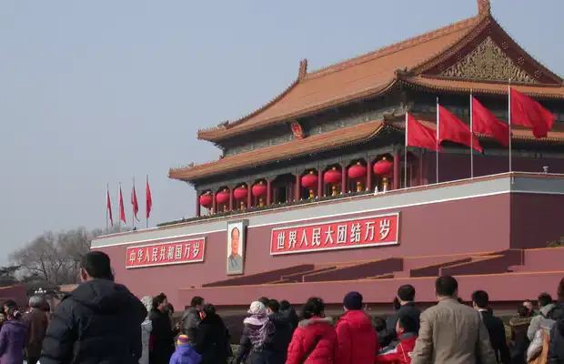 La porte principale de la place de Tiananmen est l’un des symboles les plus reconnus de la Chine. Vous pouvez y trouver le célèbre portrait de l’ancien dirigeant du Parti communiste chinois, Mao Zedong, qui donne accès à la Cité interdite. C'est sans aucun doute l'un des endroits les plus visités de Chine. C'était sur cette place que Mao proclama la République populaire le 1er Octobre 1949. A côté du grand portrait de cet ancien dirigeant, vous pouvez lire un slogan qui dit «Vive la République». Elle a été construite au XVe siècle et restaurée au XVIIe siècle. Elle était la plus vieille des quatre portes de l'ancienne muraille qui entourait l’enceinte impériale.
