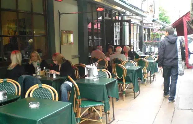 Le Boudin Blanc est un des restaurants de Hertford street, derrière le Parc Lane, un lieu avec du charme où il est agréable de déjeuner et de dîner. C'est un restaurant de cuisine française, qui présente des plats classiques à un prix un peu élevé mais raisonnable pour le quartier. Il y a des huîtres avec du vin rouge, pâté de canard, escargots, risotto de truffes… Les entrées sont entre 8 et 13 livres. Les poissons coûtent autour de 20 livres, il y a une sole meunière et plusieurs filets suivant la saison, on te sert un poisson entier grillé. Les viandes sont un peu chères, jusqu'à 23 livres pour une côte de boeuf avec champignons ou l'agneau rôti.