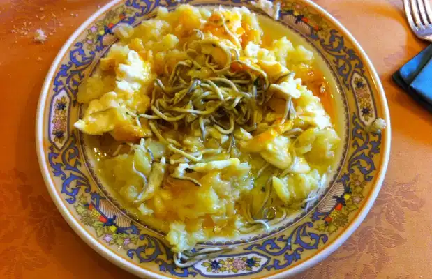 On y mange bien, avec une variété de spécialités de cuisine castillane, comme le cochon de lait, il y a divers plats de viandes et de poissons, et qui se distingue également par ses tapas et l'oreille de porc typique qui est une merveille, la nourriture est bonne, le prix est bon, pris avec des vins de la rivage, Riojas, etc.