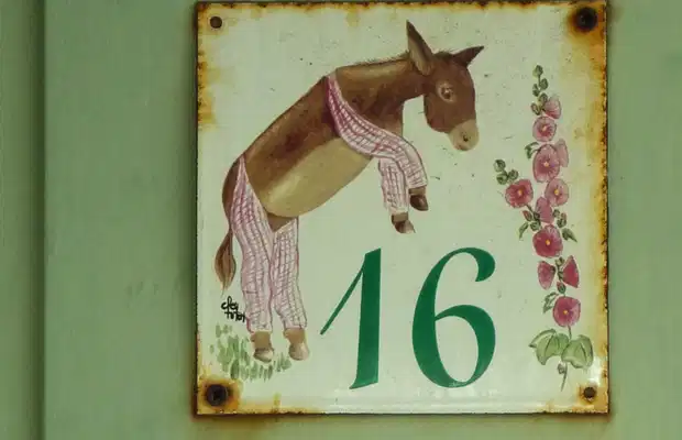 Aux Portes de Ré comme sur le reste de l'île, les plaques de numéros des maisons sont assez originales. D'ordinaire, dans un autre lieu, j'aurais pu trouver ça tres kitsch et pas du tout à mon goût mais la sur l'île j'avoue que ça me plait bien. Un thème prédominant : Les roses tremières! Ah quelles sont belles ! Ensuite en seconde position, je dirais : Les ânes en culotte. Enfin, pour les autres, on trouve un peu de tout , des oiseaux, des thèmes marins, des thèmes champêtres.. Il y en a de toutes sortes ! Alors levez les yeux sur elles !