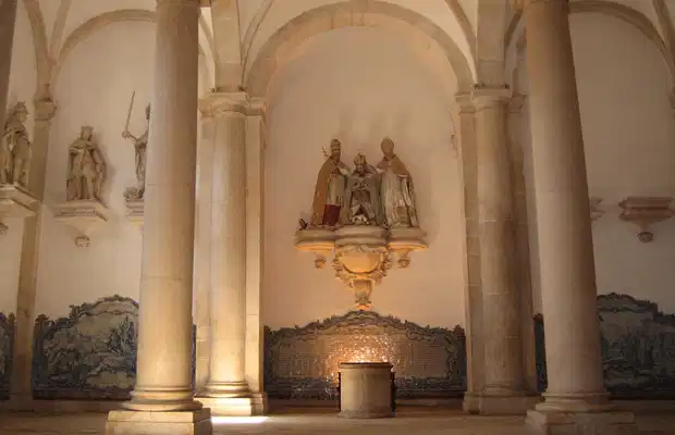 Cette histoire de sa fondation en 1153, peut être lu dans les belles mosaïques qui décorent la salle des Rois. On trouve également en elle, placée à mi-hauteur des murs, des statues en terre cuite polychromes des rois du Portugal à D. Jose et ont été faites par des moines appelés «baristas» pour se consacrer à la sculpture en argile, le bois et la pierre.