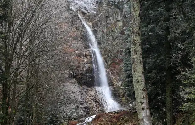 En 3/4 heure, on arrive, à travers la forêt, au sommet du chirat ; passage technique dans l'éboulis et on atteint la cascade,connue sous le nom de "Saut du Gier". On est très près de la source et, en été, ce n'est souvent qu'un filet d'eau.