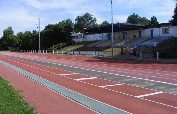 J'y vais de temps en temps pour courir sur la piste. Je fais un échauffement, puis des lignes droites. La piste est très bien. Il y a des gradins et des vestiaires. L'arrivée du semi-marathon se fait au stade André Bouffénie.