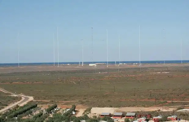 Ce site est impressionnant par la taille des nombreuses antennes qu'on aperçoit à travers la base: utilisées pour les communications à très basse fréquence avec les navires australiens autour du monde, elles permettent de communiquer sans utiliser de satellite mais à une vitesse très faible (quelques centaines de caractères par minute). Et surtout, ça nécessite une longeur de cable incroyable : les antennes de la base d'Exmouth