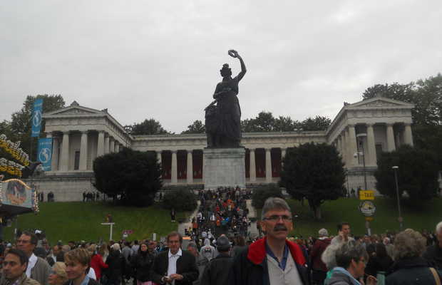 Comme une déesse païenne, Bavaria veille au bout du parc où est situé l’oktoberfest, brandissant non pas une masse de bière ou un bretzel géant, mais une couronne de lauriers, représentant la liberté... de faire la fête ? En tous cas, les festivaliers l’ont prise au mot et lui rendent largement hommage chaque année.