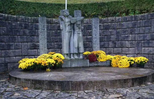 Cette image est celle des fusillés de la résistance, auxquels la ville de Besançon rend hommage en plusieurs endroits. À leurs pieds, des gerbes de fleurs viennent commémorer ceux qui risquèrent leurs vies contre les allemands du troisième Reich, traités en criminels, désormais des héros.