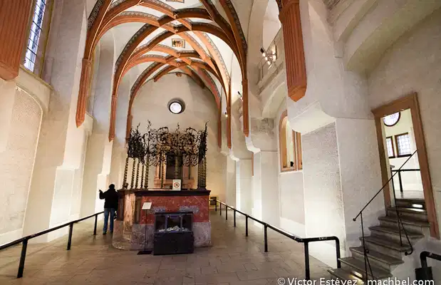 Construite en 1535, après la Seconde Guerre mondiale, cette synagogue s’est transformée en monument en mémoire de tous les juifs tchèques assassinés par les nazis. Il est inscrit sur ses murs les noms des 80.000 victimes. Au premier étage, on expose les dessins faits par les enfants dans le camp de concentration de Terezin (République tchèque). Sans être tellement spectaculaire comme la synagogue espagnole, elle fait partie du complexe des monuments juifs de Prague.