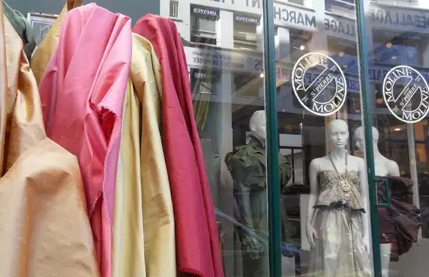 Au pied de la butte Montmartre, à côté de la Hall Saint Pierre, Tissus Moline et le plus ancien, et le plus renommé des nombreux magasins de tissus qui s'y sont installés. Depuis sa création en 1920, la boutique propose aussi bien aux particuliers qu'aux professionnels perles, tissus, estampes, boutons parmi un choix impressionnant. Les vendeurs sont spécialisés et généralement de bon conseils, et les prix sont très raisonnables. Depuis presque un siècle, les costumiers, couturiers ou simples amateurs se pressent du côté de la hall saint pierre, et particulièrement chez le renommé Moline, aujourd'hui