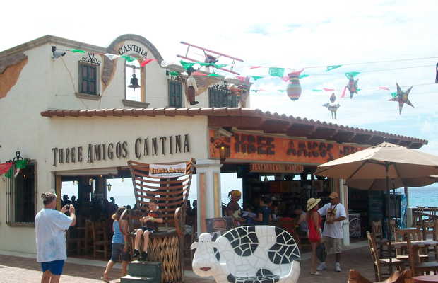 Bénéficiant d'un emplacement tout simplement privilégié, puisqu'il s'agit en réalité du premier restaurant mexicain que l'on aperçoit lorsque l'on débarque des bateaux de croisière américains (ou autres) sur l'île mexicaine de Cozumel, Three amigos cantina nous avait été recommandé par plusieurs amis, et nous y sommes donc allés les yeux fermés. Quelle bonne idée nous avons eu ! Il s'agit d'après nous de l'un des meilleurs restos du coin. Certes, pas forcément le moins peuplé ni le plus calme, mais l'ambiance y est tout simplement excellente, avec musique mexicaine en toile de fond (ou parfois, musique live, surtout en fin de journée), cocktails délicieux, accueil très sympa et chaleureux. Mais si on vient (et revient!) là, c'est aussi et surtout pour le contenu des assiettes, c'est tout simplement extra ! On a beaucoup aimé surtout les burritos aux fruits de mer (13 dollars hors taxes), juste délicieux, très copieux, très frais (ce qui est particulièrement important pour les fruits de mer vous en conviendrez), d'excellente facture, tout simplement, et particulièrement dépaysant, il faut le dire :)