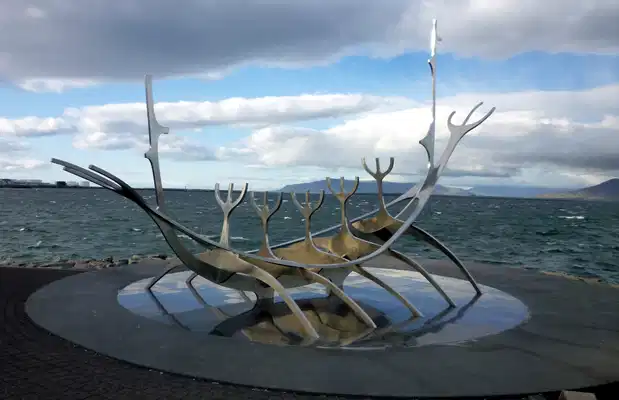 Bizarrement cette sculpture est très, très photographiée, et appréciée également par toutes les personnes que je connais qui l'ont vue... Sculptée par l'islandais Jón Gunnar Árnason il y a une quarantaine d'années, elle est facilement repérable au bord de la Saebraut, la route qui longe l'océan en partant du Harpa. Elle représente un drakkar, un bâteau viking qui me semble est dirigée plein ouest, vers le couchant, et est bien plus grande qu'il n'y paraît! Un point de vue idéal sur l'Esja, l'océan, et le Harpa, à deux pas de là!