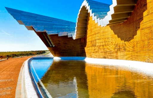 Inaugurées en 2001, les caves à vin Ysios situées à la périphérie de Laguardia (à environ 2 km), à Rioja alavesa, occupent un bâtiment conçu par l'architecte Santiago Calatrava à côté de la Sierra Cantabria avec une forme qui s'intègre parfaitement avec le paysage. Avec celles de Marques de Riscal, il est en tête du classement des bâtiments d'avant-garde dans un secteur aussi traditionnel que le vin. Le toit est composé de poutres en bois qui reposent sur les murs latéraux, décrivant ainsi une surface ondulée. Le matériel utilisé pour la finition extérieure est l'aluminium, ce qui contraste avec le bois des murs.