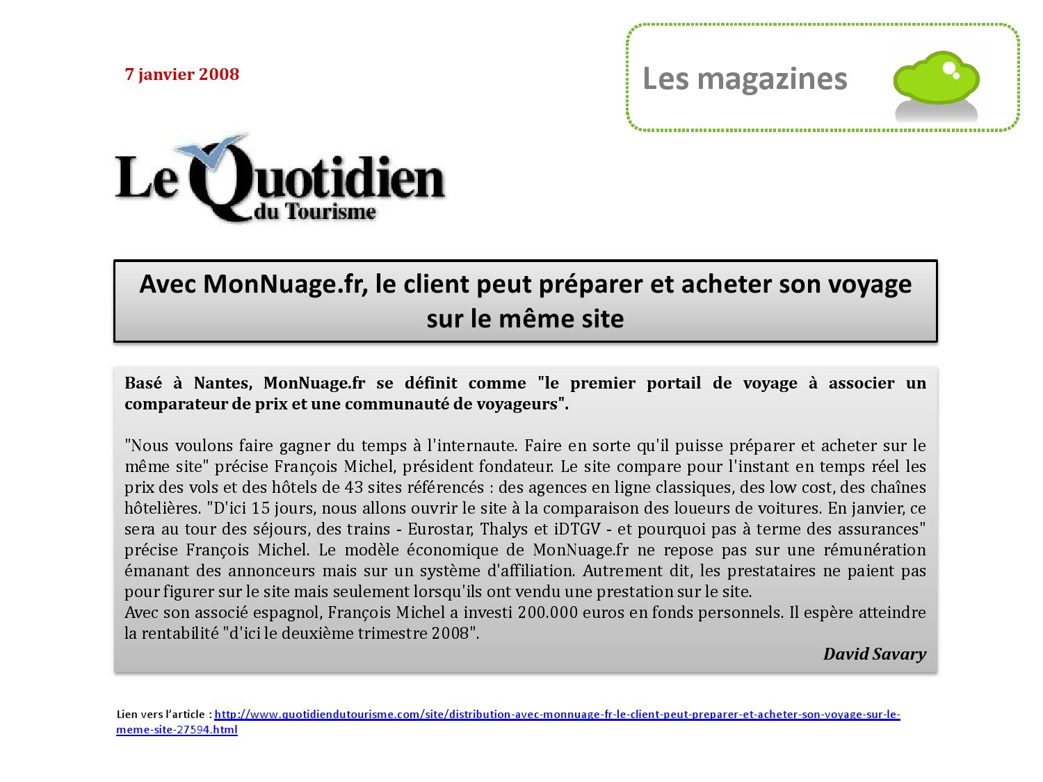Avec monnuage.fr, le client peut préparer et acheter son voyage sur le même site