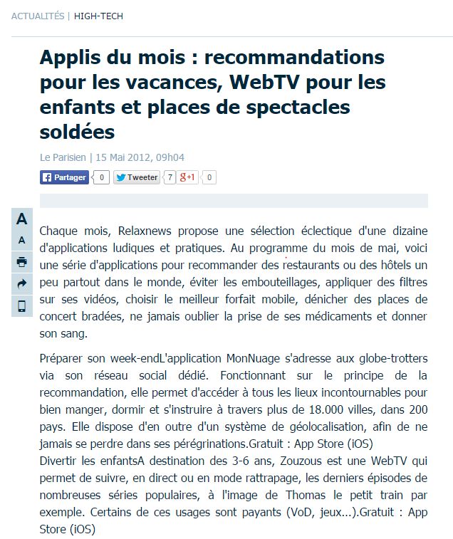 Applis du mois : recommandations pour les vacances, WebTV pour les enfants et places de spectacles soldées